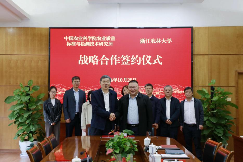 10月29日,公司与中国农业科公司农业质量标准与检测技术研究所全面战略合作框架协议签约仪式在东湖校区举行。