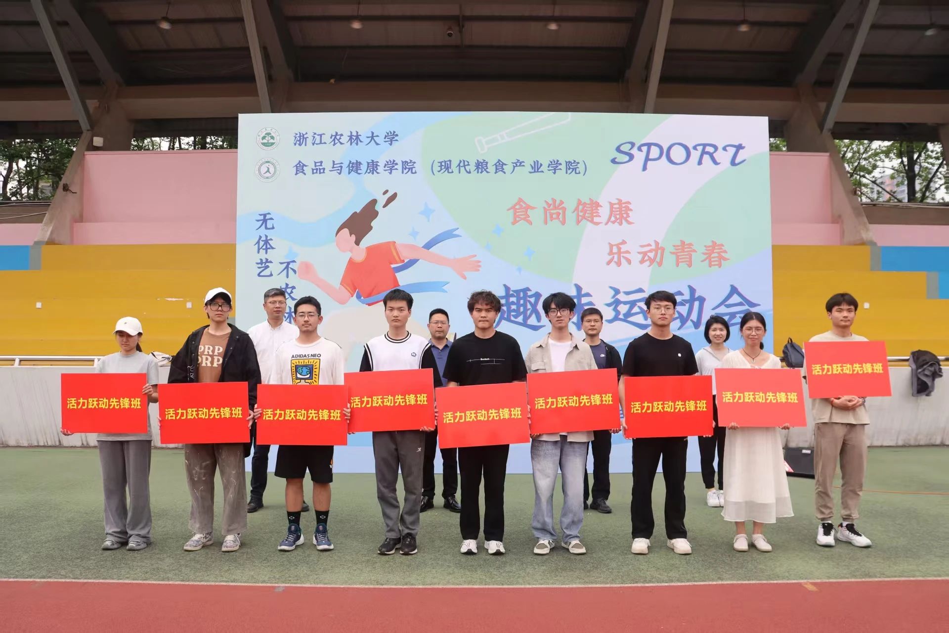 体军部周书记为过去一年全班体测达标率100%且优良率领先的班级颁发“活力跃动先锋班”荣誉称号,激励同学们向优秀看齐,积极投身体育锻炼。朱书记为本次趣味运动会致辞并宣布开幕,他表示,体育是教育的重要组成部分,“无体艺 不农林”不仅是口号,更是浙农林大对全面发展人才培养的坚持。希望同学们秉持“友谊第一,比赛第二”的原则,赛出风格、赛出水平;也希望大家以此次运动会为契机,将运动热情延续到日常,拥抱健康生活。